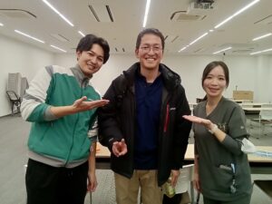 研修後に浅井院長と訪問看護ステーション仁の吉田さんと一緒にポピーのPポーズでパシャリ✨笑