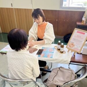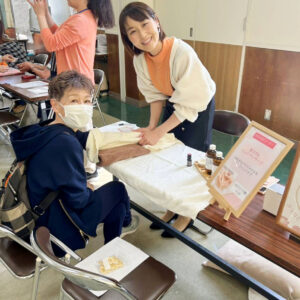 認知症予防に効果があるとされるアロマを使用し、触れることの大切さ、手のぬくもりから得られる安心感などお伝えできればと思っています。