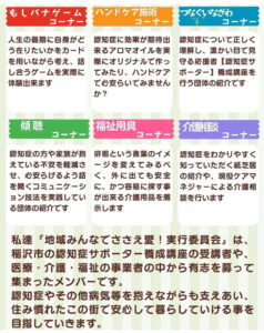 私、谷畑は3年ほど前から「地域みんなてささえ愛!実行委員会」というボランティアグループで認知症予防、周知のための活動をしています。認知症サポーター養成講座受講者や医療、介護、福祉の事業者から有志を集い結成されました。